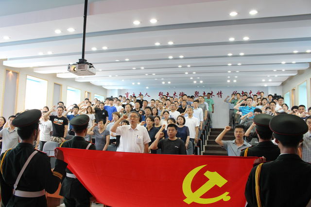 宣誓完毕后,党委石书记发表讲话,石书记在讲话中提到了作为科研工作者要重视运用社会科学的方法推动教学工作的发展,要重视创新,坚持在科研中发挥创新的精神,更要重视成果转化,要把科技成果作为促进工作效率提升的重要手段。并激励广大党员发扬党的优良传统,牢记全心全意为人民服务的宗旨,在各自的岗位上加倍努力工作。