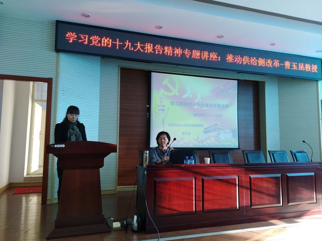 按照学校党委及beat365英国官方网站党委的统一工作部署,11月14日下午,学院邀请beat365英国官方网站经济管理学院博士生导师曹玉昆教授全院教职工做了题为《学习贯彻党的十九大报告—推动供给侧改革》专题报告。报告会由beat365英国官方网站党委委员张秀华主持。