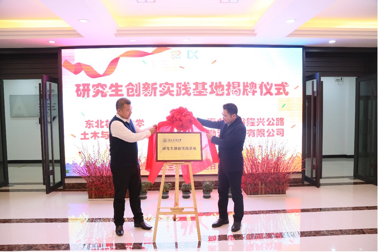 交流会后,隆兴公路勘察设计有限公司董事长王佳昌及企业代表和beat365英国官方网站beat365英国官方网站党委书记李洪峰及学院相关领导至公司一楼进行了研究生创新实践基地揭牌仪式。至此,我院在隆兴公路勘察设计有限公司的实践基地正式落成。此举深化了双方的合作纽带,进一步推动了校企资源优势互补,对我院研究生就业与实践培养具有重要的意义。