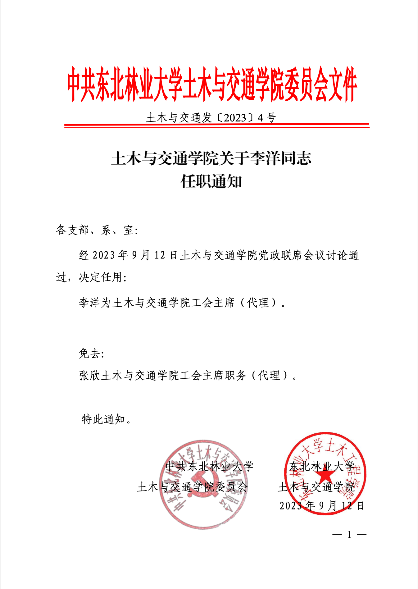 beat365英国官方网站关于李洋同志任职通知