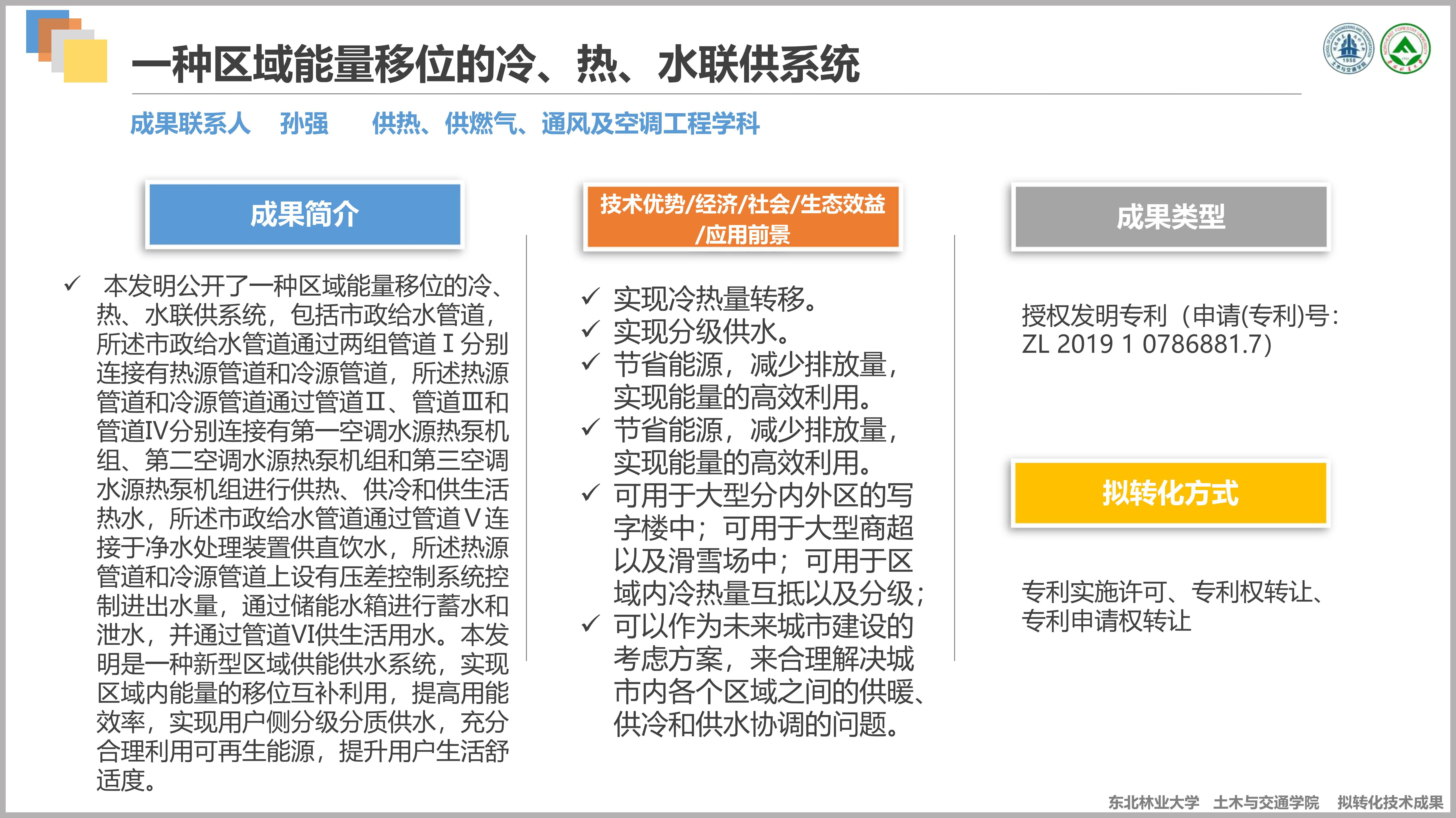 供热、供燃气、通风及空调工程学科拟转化技术成果